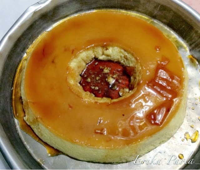 - Verter la preparación sobre el molde acaramelado (El caramelo debe estar sólido).